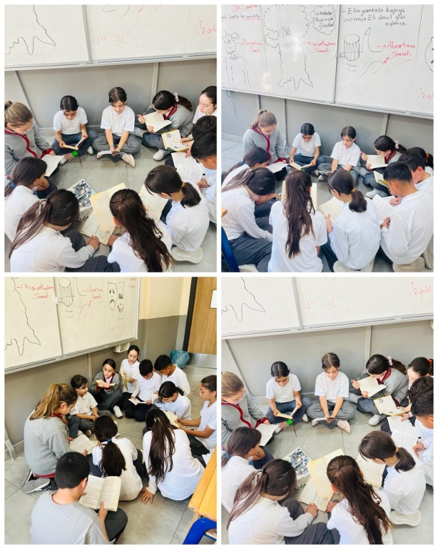 2025-2026 Eğitim öğretim yılı Eğitim Kenti Karabük projesi Eylül ayı okuyorum öğreniyorum kapsamında okuduğumuz kısa eserlerle ilgili okuma çemberi yapılmış olup , okumasını tamamlayan öğrenciler sırayla kitaplarını arkadaşlarına anlatarak paylaşımlarını gerçekleştirdiler .